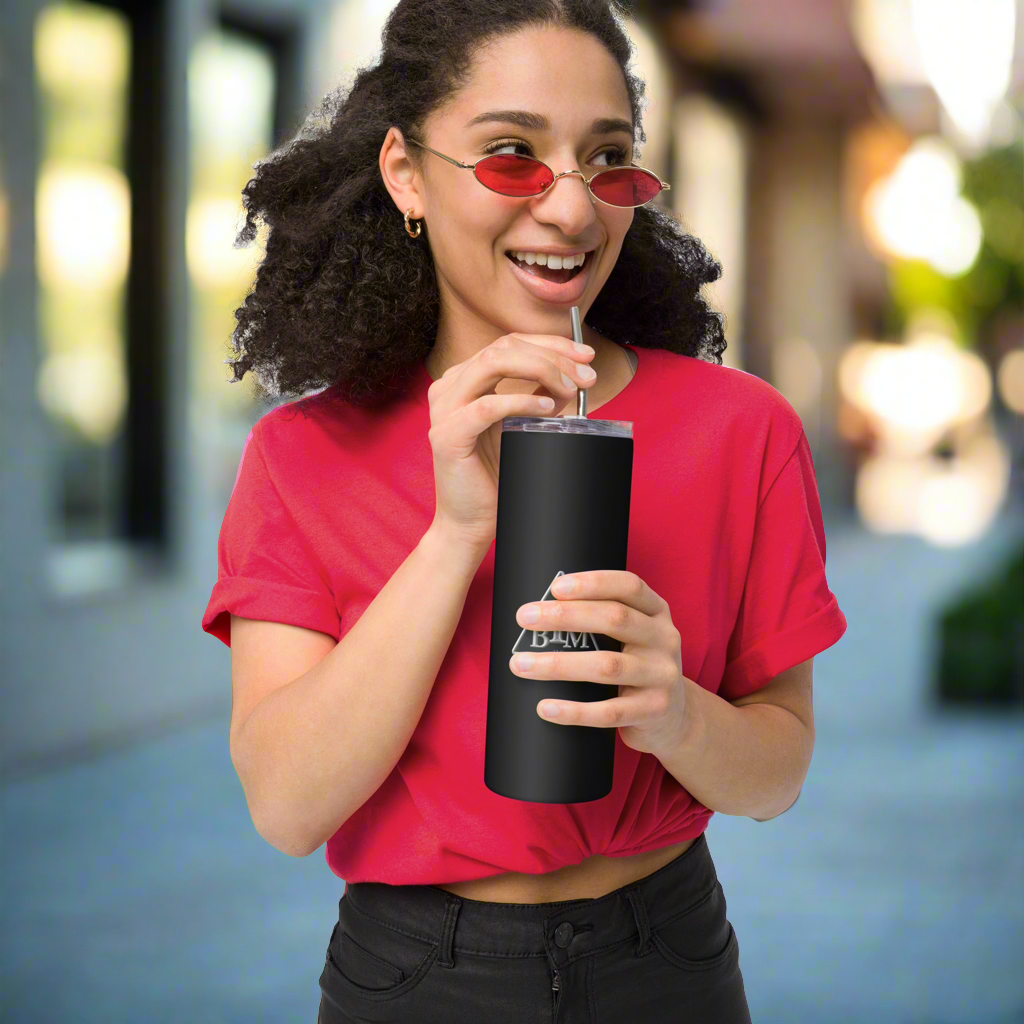 Enjoy hot or cold drinks on the go with this stylish stainless steel tumbler! This reusable tumbler with a metal straw is a perfect combo for hot or cold drinks at any time of the day.